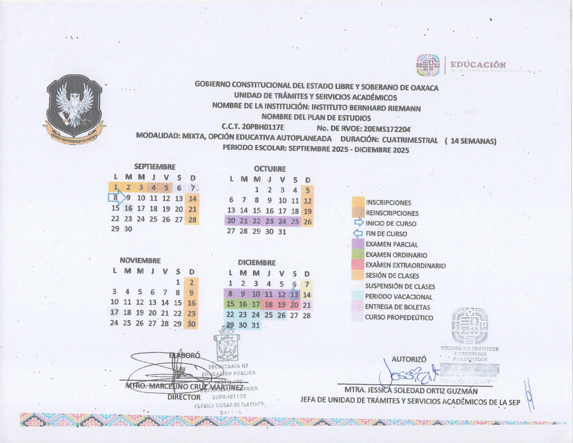 BACHILLERATO FIN DE SEMANA; PERIODO ESCOLAR SEPTIEMBRE 2025-DICIEMBRE 2025