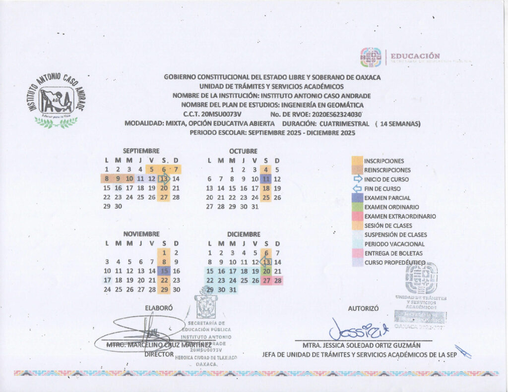 INGENIERÍA GEOMÁTICA; PERIODO ESCOLAR SEPTIEMBRE 2025-DICIEMBRE 2025