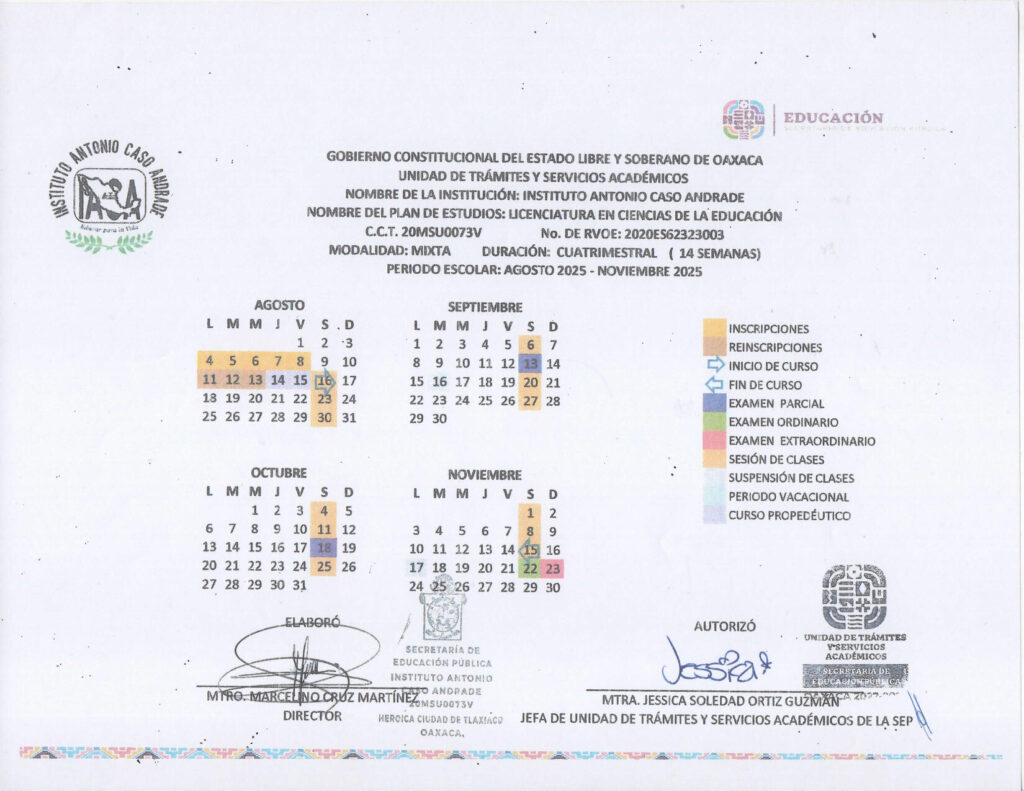 LICENCIATURA EN CIENCIAS DE LA EDUCACIÓN; PERIODO ESCOLAR AGOSTO 2025-NOVIEMBRE 2025