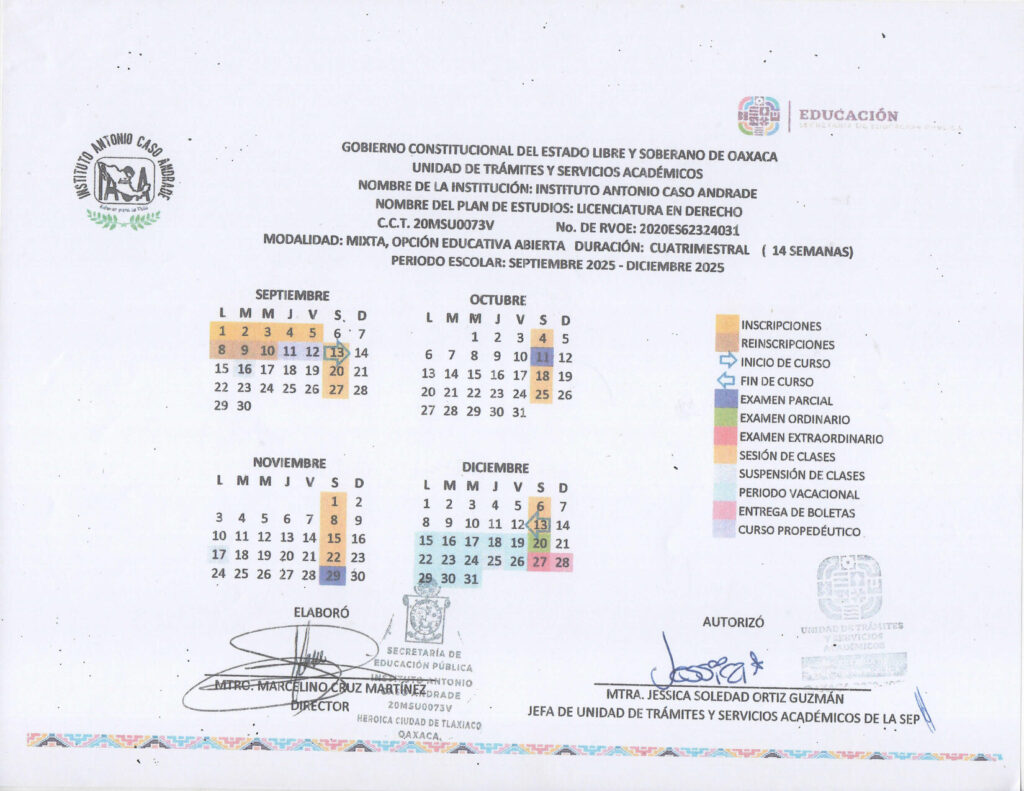 LICENCIATURA EN DERECHO; PERIODO ESCOLAR SEPTIEMBRE 2025-DICIEMBRE 2025
