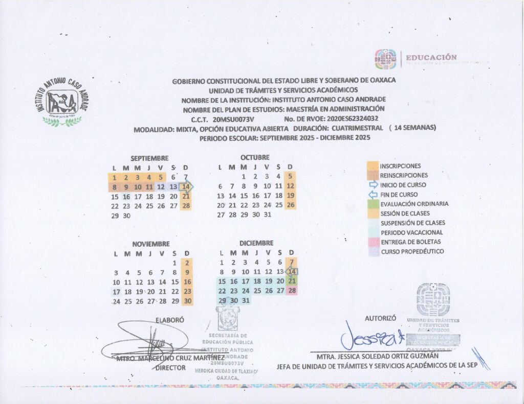 MAESTRÍA EN ADMINISTRACIÓN; PERIODO ESCOLAR SEPTIEMBRE 2025-DICIEMBRE 2025